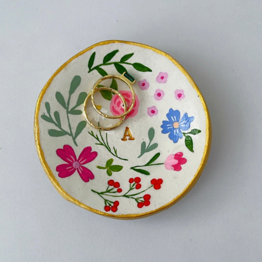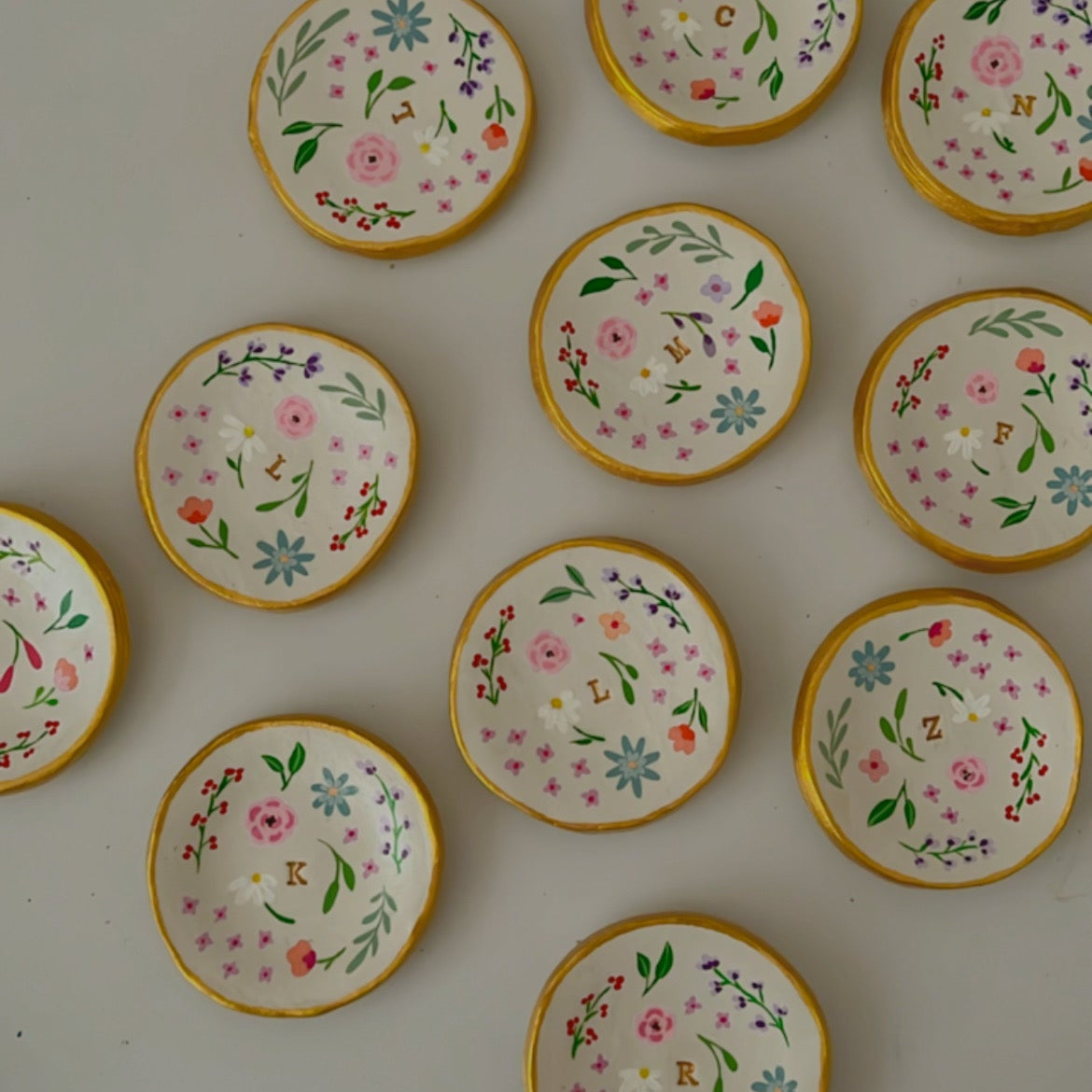 Platito decorativo personalizado con tu inicial, lo puedes utilizar como joyero para tus anillos, pulseras, cadenitas. Perfecto para regalar.